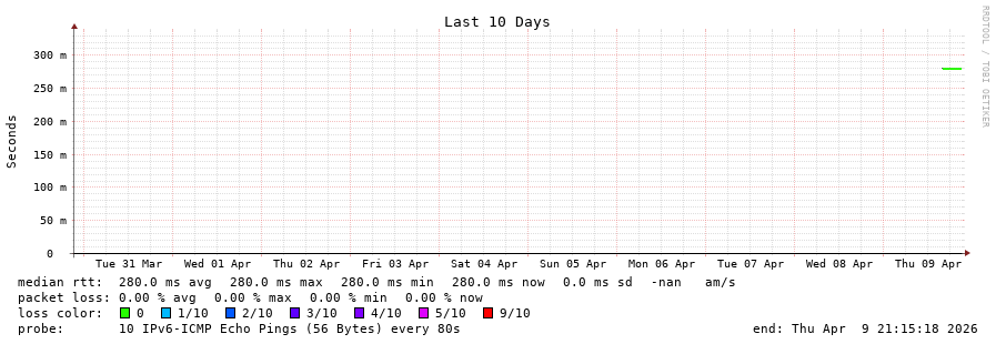 traceroute to 2402:1f00:8400::2:0:19c (2402:1f00:8400::2:0:19c), 30 hops max, 80 byte packets - Generated at 2026-04-09 21:00:02