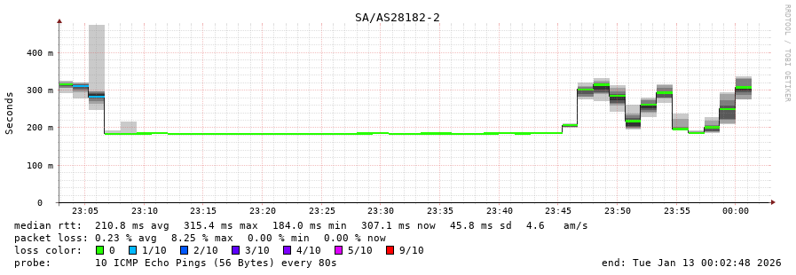 13. Median RTT 0.313 seconds