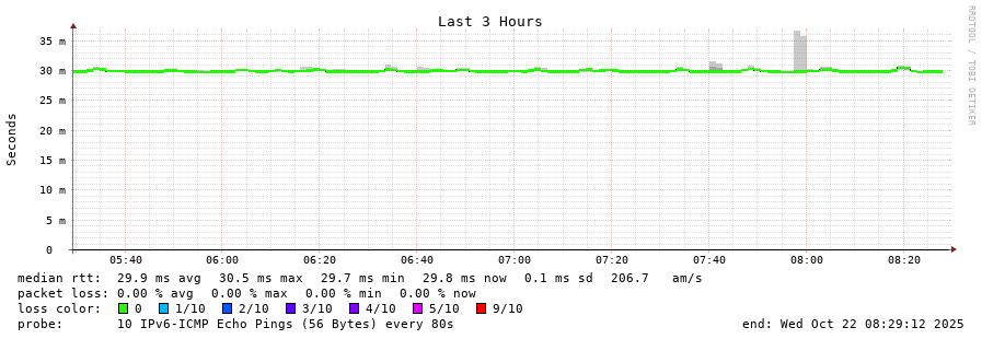 traceroute to 2001:b68:d::28 (2001:b68:d::28), 30 hops max, 80 byte packets - Generated at 2025-10-22 08:15:02