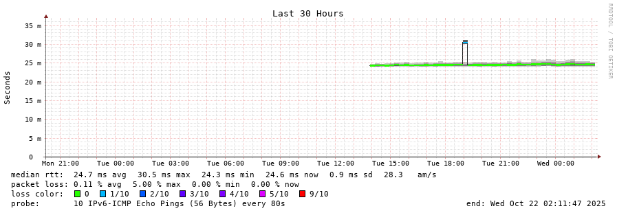 traceroute to 2a03:bb40:1::b (2a03:bb40:1::b), 30 hops max, 80 byte packets - Generated at 2025-10-21 20:30:01